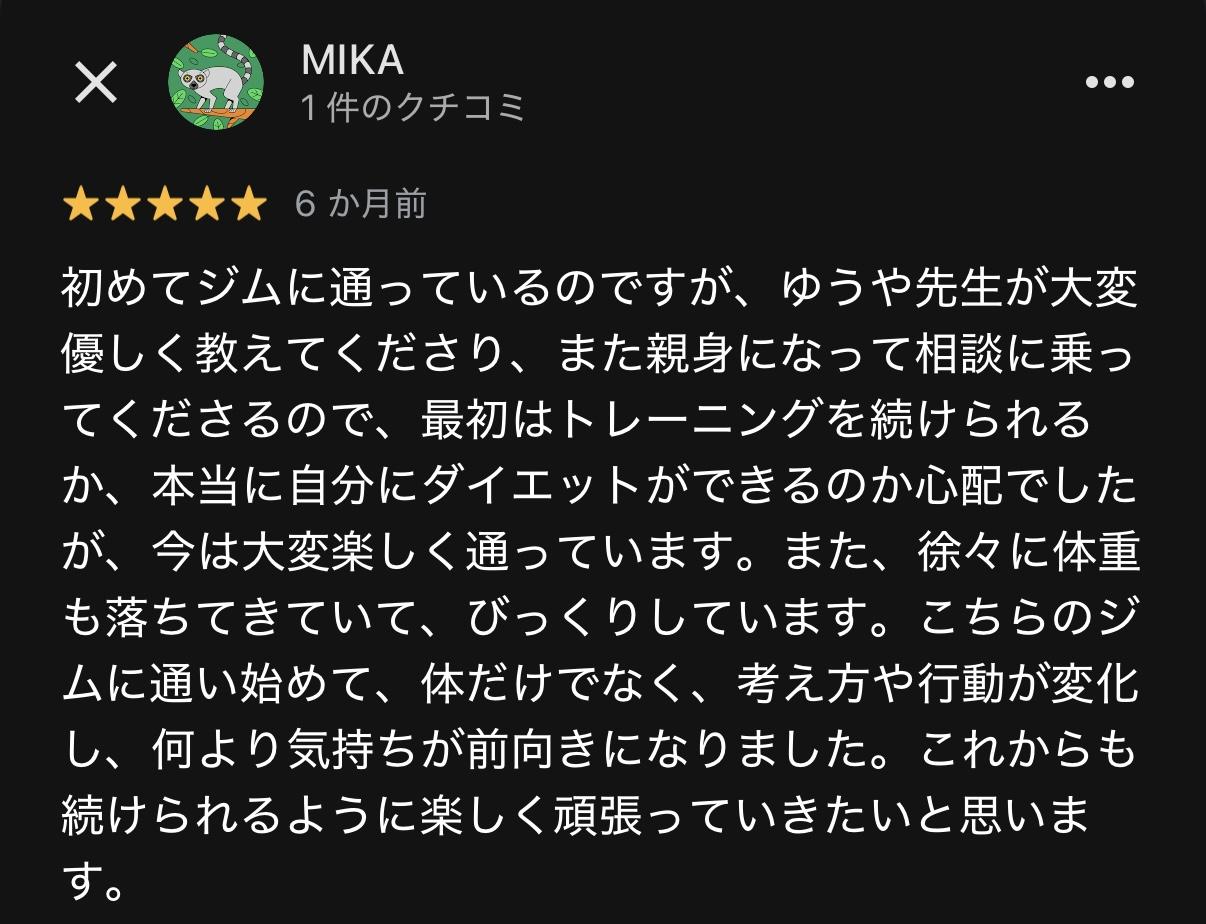食事管理・運動はもちろん、メンタル面のサポートを特に重視しています。ダイエットをしていると、